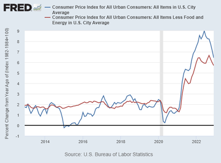 A remarkably robust labor market may be the exception to this trend. Two main factors help to explain this dynamic. First, the supply of workers remains low with the U.S. civilian labor force below pre-Covid levels. Drivers include less immigration due to mobility restrictions as well as early retirements prompted by the onset of the pandemic. Second, shifts in the economy have occurred so rapidly that many businesses haven’t been able to execute responses. Manufacturing and logistics businesses had been hiring rapidly due to an accelerated shift to e-commerce but have begun reducing headcount. Many service businesses still aren’t fully staffed as consumption patterns have shifted from goods to experiences, providing capacity to absorb laid-off workers from other sectors.