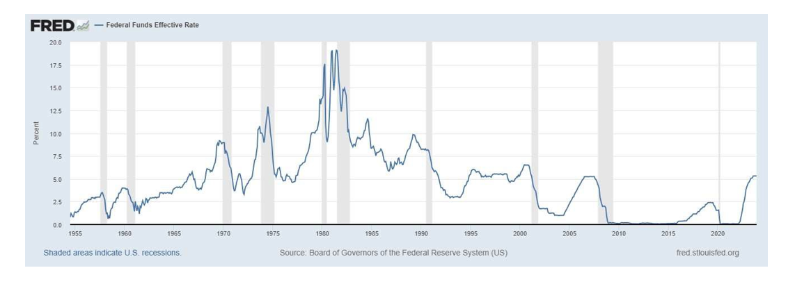 Sticking the (Soft) Landing: A key debate among economists and investors throughout 2023 has been whether the Federal Reserve will achieve a soft landing (taming inflation without recession), hard landing (sacrificing economic growth to contain inflation), or no landing (failing to subdue inflation, requiring more drastic measures). The elusive soft landing appears in reach and has only been attained in three hiking cycles since the mid-1950s as shown in the chart below: the mid-1960s, 1980s, and 1990s. The Fed seems to be fulfilling its “dual mandate” of price stability and full employment for now. Inflation as measured by the consumer price index (CPI) has fallen to roughly 3.4% from a peak of roughly 9% in June 2022. Headline unemployment sits at 3.7% as of December, among the lowest readings since the late 1960s.
